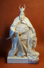 Laissez-moi essayer d’expliquer les différentes étapes de l’origami que j’ai traversées au cours de ma carrière, le résultat actuel est la série des « Barbares » (que j’appelle ainsi en référence au film « Conan le Barbare » avec Arnold Swartzenegger), un personnage de « Merveilleux héroïque » qui pourrait représenter le premier modèle de la série (en fait, je l’ai changé en Aragorn, le Seigneur des Anneaux.)