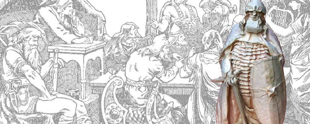 Contrairement aux personnages classiques comme les hobbits ou les nains, le concept de barbare est que je fais de mon mieux pour définir de nombreuses textures différentes avec le même papier. Je réfléchis également en termes d’économie d’énergie et d’économie de papier. Cela signifie par exemple que les plis horizontaux créent 5 doigts et le bouclier. Les plis verticaux créent le casque, les détails du visage et l’épée. Mais tous ces plis doivent également se croiser au milieu du carré initial. L’économie signifie aussi qu’il faut les réutiliser pour obtenir les formes centrales de l’armure.