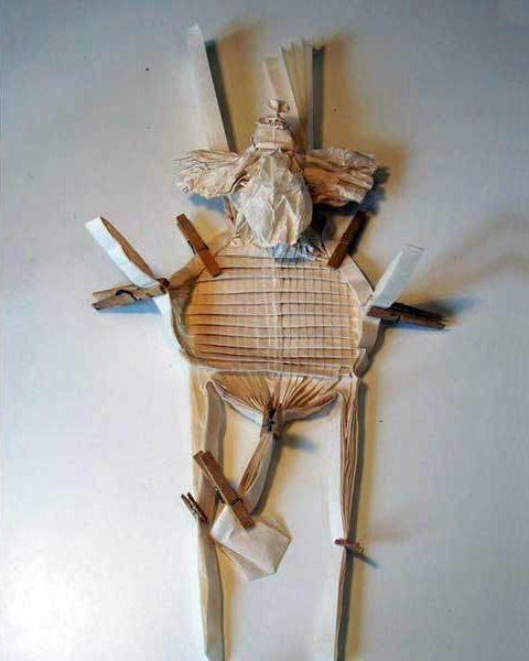 L’utilisation du « box-pleating », vient en renfort de mes pauvres aptitudes en géométrie ; Mais cette simple aide technique à laquelle j’ai eu recours pour produire des textures dès mes premiers modèles, pour réaliser des animaux tels que le hérisson, l’escargot, le pangolin, la tortue, comportaient déjà des « formes » et autres textures de papier jouant avec la lumière.