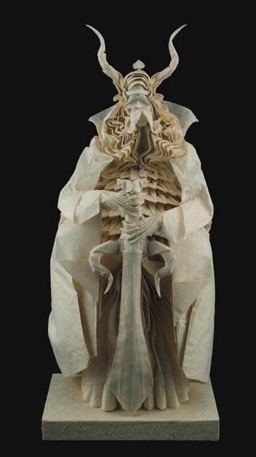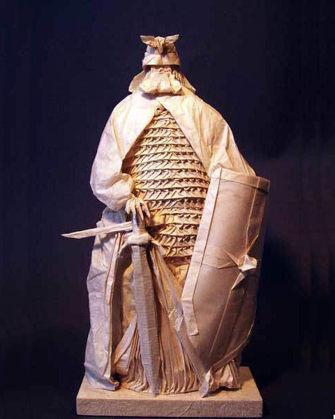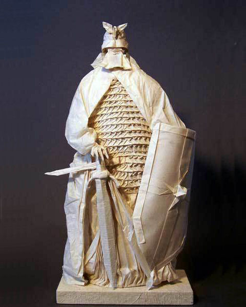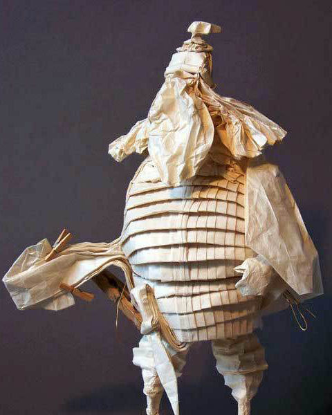 Je reviens alors à la technique normale de « box-pleating ». Par rapport aux techniques traditionnelles, elle apporte une victoire facile. Mais c’est normal dans mon cas : par rapport à beaucoup d’autres créateurs, je ne suis pas doué pour la géométrie. Mes aptitudes dans ce domaine sont très limitées. Mais je m’en fiche. Ce qui m’intéresse vraiment, ce n’est pas la conception géométrique, mais un résultat final en 3D, aussi vivant que possible. De plus, cette technique peut produire de nombreuses textures et détails différents, comme vous pouvez le voir dans la série des Barbares.